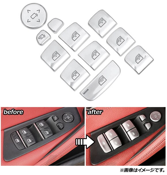 パワーウインドウボタンカバー タイプC BMW 汎用 左ハンドル車用 入数:1セット(11個) AP-IT1755-TC