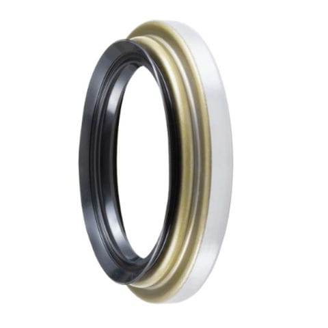 一般にハブ側オイルシールで、ベアリング内のグリース保護と外部からの水や異物などの侵入を防ぎます。フロントはディスクブレーキ車が増えており、ブレーキダストの侵入も防いでいます。主に外周金属が使用され、圧入を必要とします。
