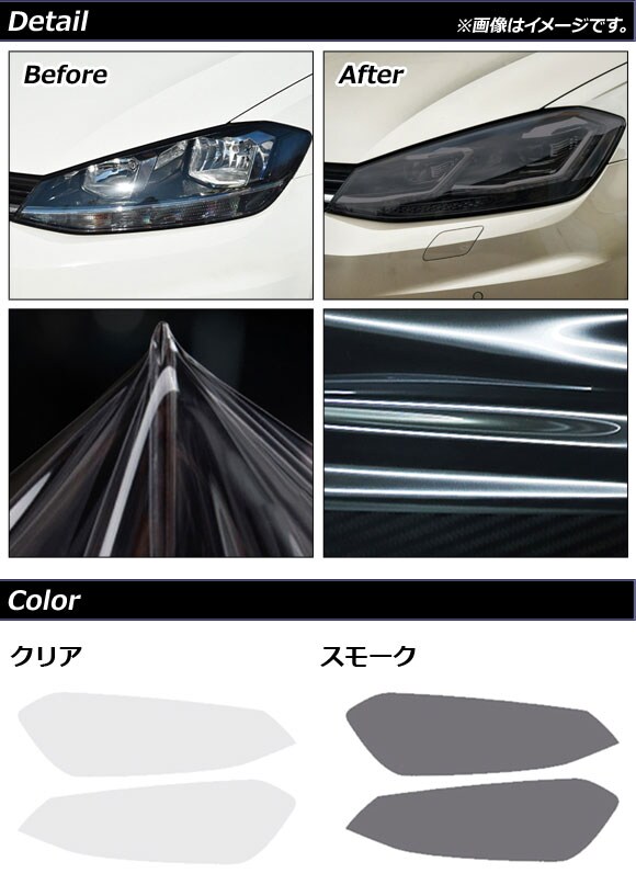 ヘッドライトフィルム フォルクスワーゲン ゴルフ7 AUC系 前期/後期 2013年04月~2021年04月 スモーク TPU製 AP-XT1620-SM 入数:1セット(左右)