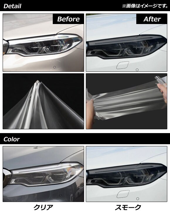 ヘッドライトフィルム BMW 5シリーズ G30/G31 前期 2017年02月~2020年08月 スモーク TPU製 AP-XT1640-SM 入数:1セット(左右)
