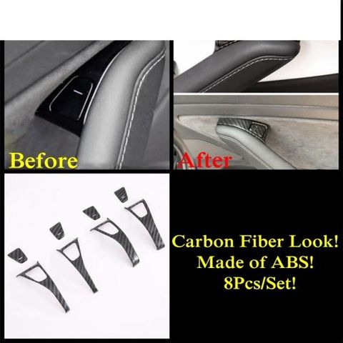 ドア ロック ボタン ハンドル アームレスト ウインドウ コントロール パネル カバー キット トリム カーボンファイバー アクセサリー 適用: テスラ/TESLA モデル 3 Y 2018-2022 タイプB AL-PP-0049 AL