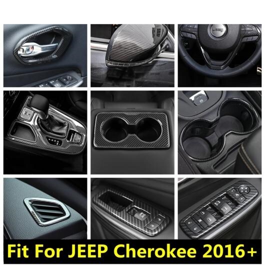 適用: ジープ/JEEP チェロキー/CHEROKEE 2016-2021 ステアリング ホイール ギア パネル ハンドル ボウル ドリンクホルダー フレーム AC エア カバー トリム カーボンファイバー モデルD AL-PP-1910 AL