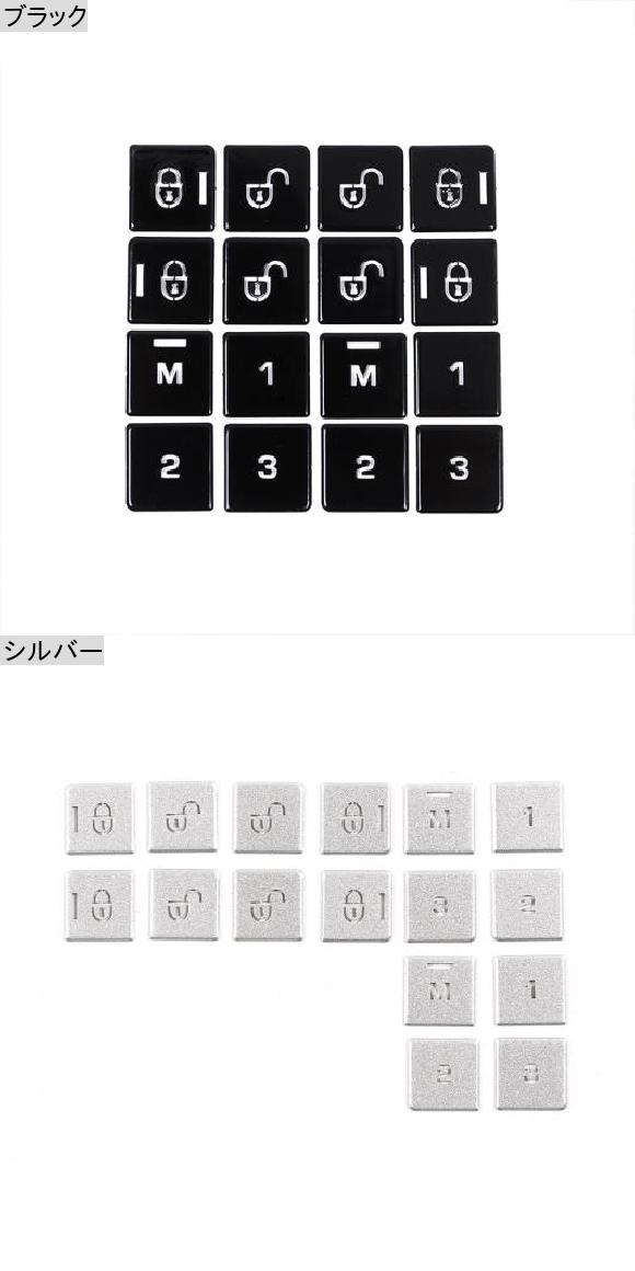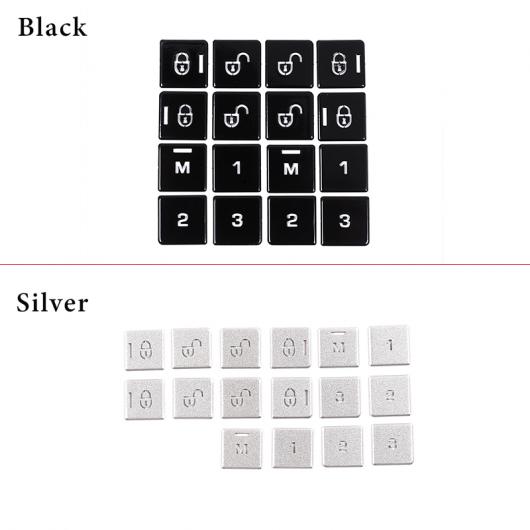 16ピース ドア シート メモリー アジャスター プッシュ ボタン トリム カバー ステッカー 適用: ランド ローバー/ROVER レンジ ローバー/ROVER ヴォーグ 2013-2017 ブラック・シルバー AL-PP-3371 AL