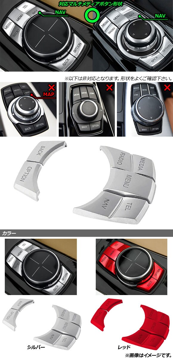 マルチメディアボタンカバー レッド BMW 汎用 7ボタン 入数:1セット(5個) AP-IT1999-RD