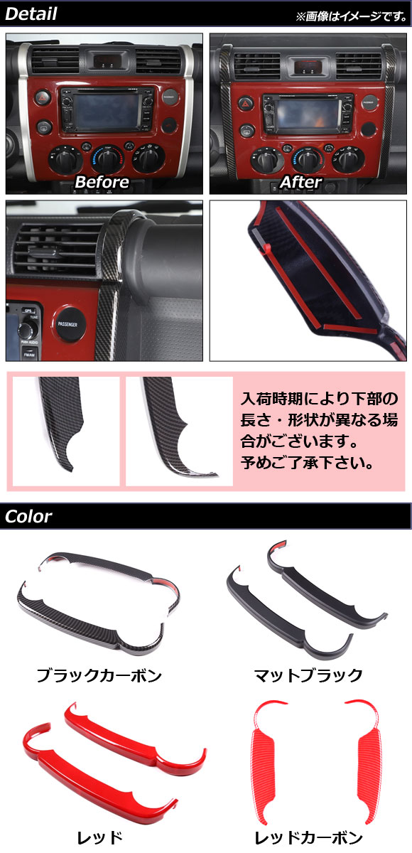 コンソールサイドパネルカバー トヨタ FJクルーザー GSJ15W 2010年12月~2018年01月 レッドカーボン ABS製 入数:1セット(2個) AP-IT2060-RDC