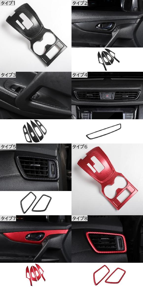 カーボンファイバー パターン 適用: 日産 ローグ 2014-2021 X-トレイル 通気口 ギア ドリンクホルダー ウインドウ リフト パネル 装飾 カバー タイプ1・タイプ6 AL-PP-4699 AL