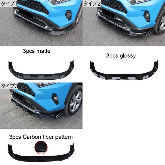 3ピース 適用: トヨタ RAV4 2020-2021 フロント シャベル 前側 リップ スモール サラウンド 装飾 タイプ1~タイプ3 AL-PP-4748 AL