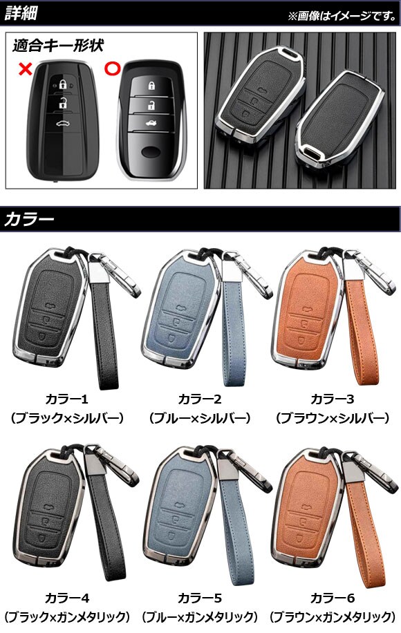 キーケース カラー4 3ボタン 亜鉛合金+レザー ストラップ付き トヨタ 汎用 AP-AS683-COL4