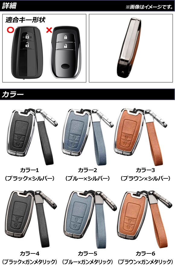 キーケース カラー2 2ボタン 亜鉛合金+レザー ストラップ付き トヨタ 汎用 AP-AS684-COL2