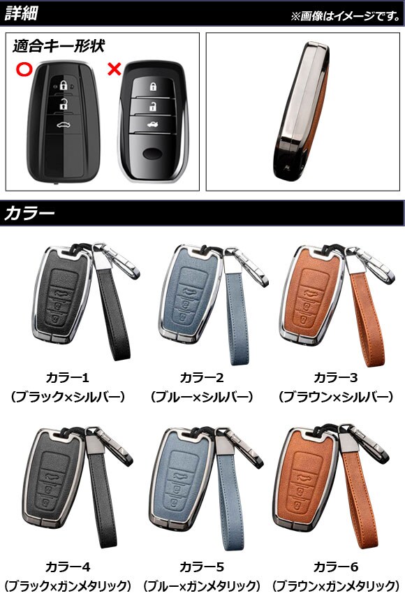 キーケース カラー1 3ボタン 亜鉛合金+レザー ストラップ付き トヨタ 汎用 AP-AS685-COL1