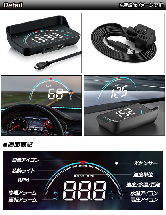 ヘッドアップディスプレイ 反射ディスプレイ 速度計 オドメーター メーター 時計 計測器 ディスプレイ 反射 時間 時刻 日付 衛星 衛星測位 座標 コンパス 速度 車速 スピード 回転速度 RPM 冷却水温度 冷却 水温 走行距離 走行 距離 速さ 警告 測定 機能 電源 スイッチ ボタン バッテリー 電圧 運転 ダッシュボード コンソール インリアパネル インパネ パネル フロントガラス フロント 車載 車内 取り付け 増設 後付け 設置 便利 便利グッズ 部品 電装 デジタル OBD2 M8 16pin 内装 内装パーツ パーツ インテリア インテリアパーツ