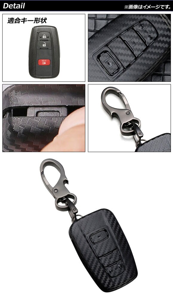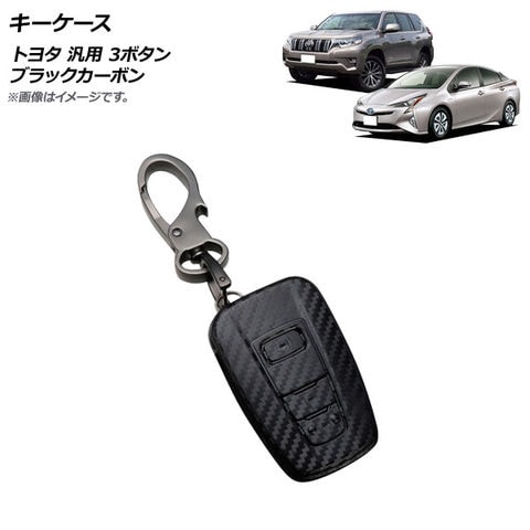 キーケース ブラックカーボン 3ボタン カーボンファイバー製 キーホルダー付き トヨタ 汎用 AP-AS689
