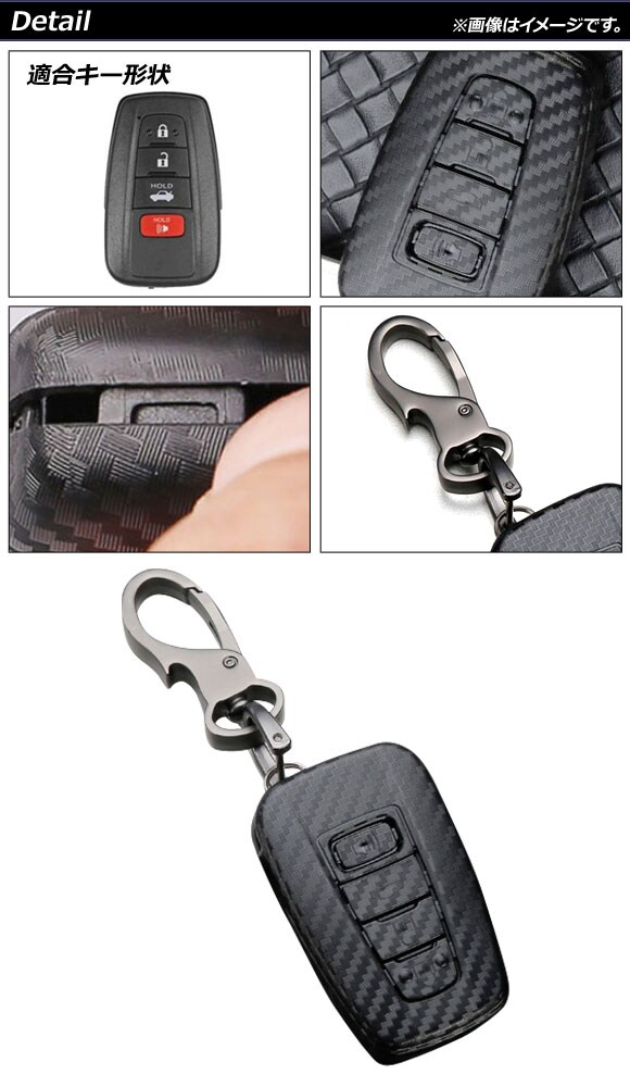 キーケース ブラックカーボン 4ボタン カーボンファイバー製 キーホルダー付き トヨタ 汎用 AP-AS690