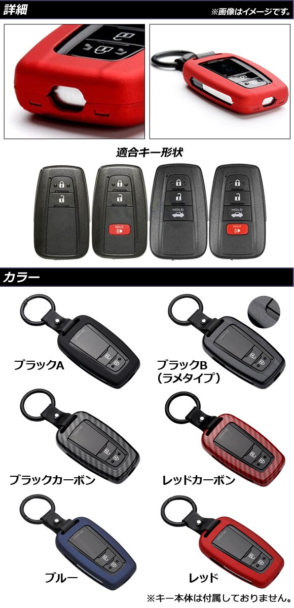 キーケース ブラックカーボン 2/3/4ボタン対応 亜鉛合金製 キーホルダー付き トヨタ 汎用 AP-AS691-BKC