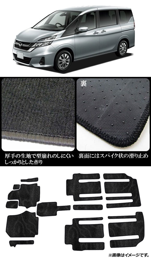 フロアマット 日産 セレナ C27 ロングスライドシート車用 2016年08月~ ブラック 波模様 入数:1セット(12枚) AP-IT2173
