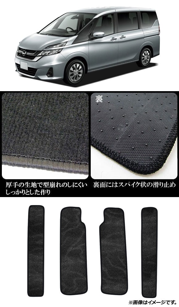 ステップマット 日産 セレナ C27 2016年08月~ ブラック 波模様 入数:1セット(4枚) AP-IT2174-BK