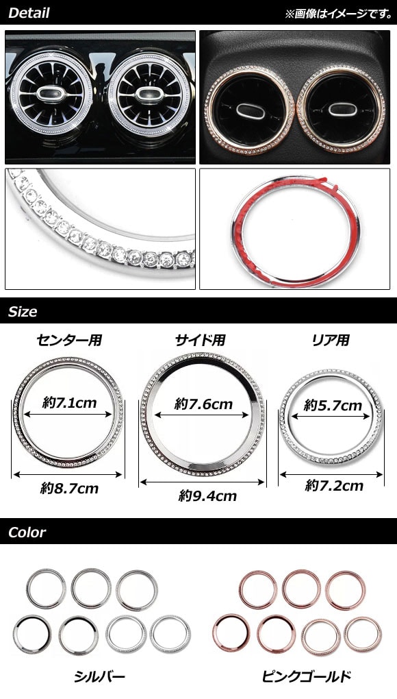 エアコンダクトリングカバーセット メルセデス・ベンツ Bクラス W247 B180,B200 2019年06月~ ピンクゴールド フロント&リア ラインストーン付き 入数:1セット(7個)