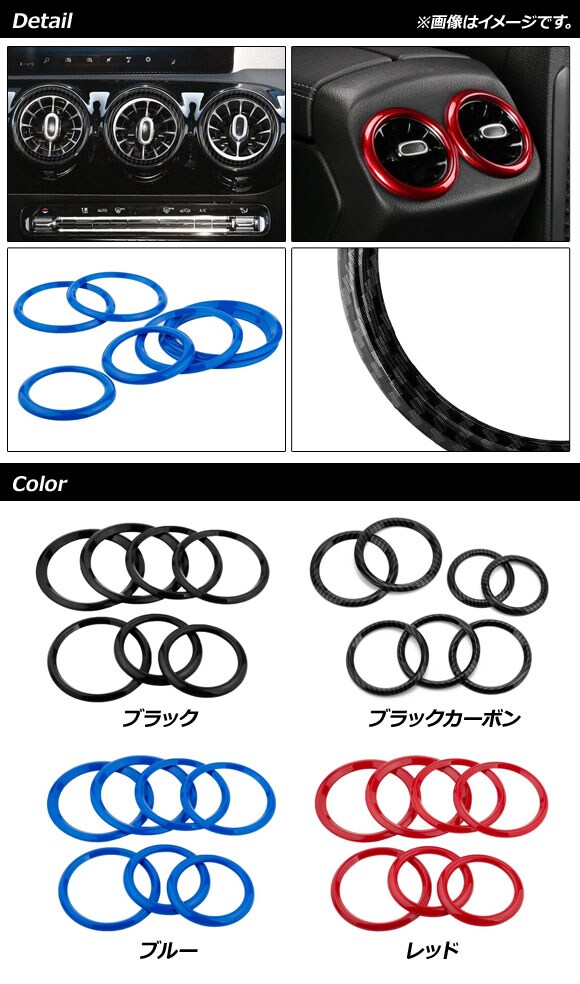 エアコンダクトリングカバーセット メルセデス・ベンツ GLAクラス H247 GLA180,GLA200 2020年06月~ ブラックカーボン ABS製 フロント&リア 入数:1セット(7個)