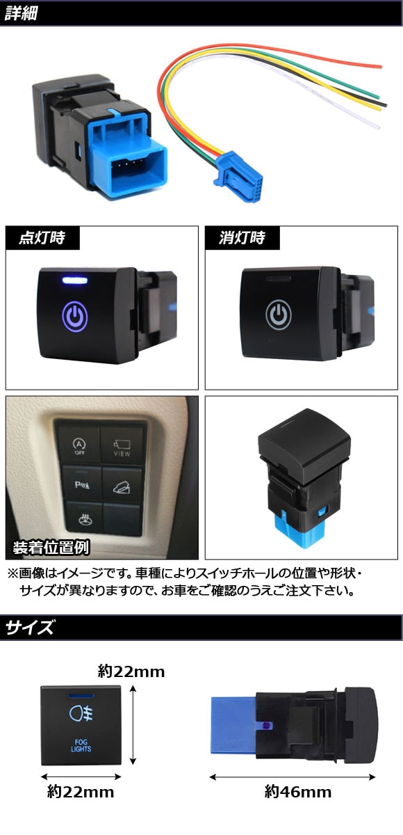増設用 LEDスイッチ ブルー点灯 タイプ9 デイライトマークタイプ 12V 5ピン トヨタ/ダイハツ 汎用 AP-EC741-T9