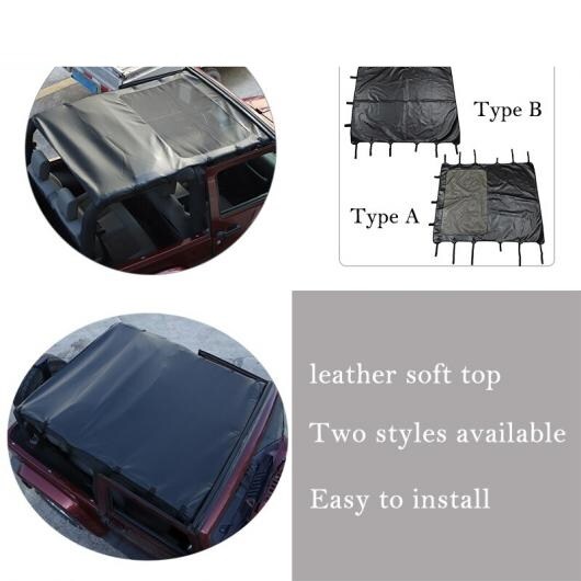 ソフト レザー トップ ルーフ サンシェード 紫外線対策 カバー 適用: ジープ/JEEP ラングラー JK JKU 2007-2017 2ドア ブラック ヒート 絶縁 アクセサリー タイプA・タイプB AL-RR-2504 AL