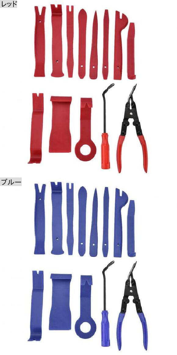 13ピース ユニバーサル ラジオ ドア パネル トリム ダッシュボード クリップ ペンチ ファスナー リムーバル ツール キット レッド・ブルー AL-RR-3203 ALのレビュー