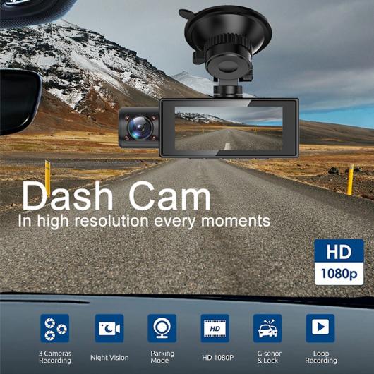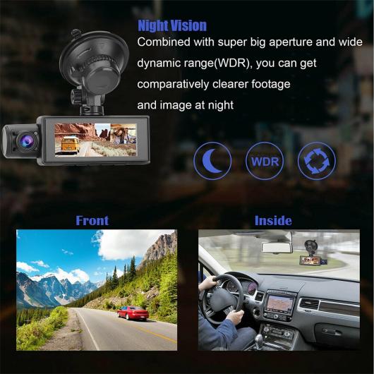 DVR フル HD 1080P ダッシュ カム フロント + インサイド + リア カメラ リア ビュー オート ビデオ レコーダー パーキング モニター ナイト ビジョン G-センサー GPS ダブル 録画 AL-RR-3754 AL