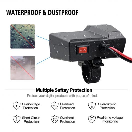 10-24V オートバイ デュアル USB 電圧計 チャージャー モト 3.4A 5V USB チャージャー オン/オフ スイッチ ABS プラスチック オートバイ 充電 アクセサリー ブラック AL-RR-3809 AL