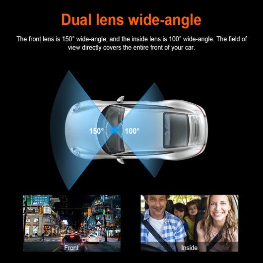 レコーダー G-センサー 1080P フロント インサイド カメラ 車両 カメラ デュアル レンズ DVR ダッシュ カム ビデオ ブラック AL-RR-3896 AL