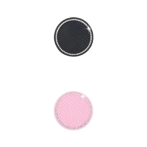 1ピース 滑り止め ドリンクホルダー パッド ラインストーン ラバー マット 適用: ボトル ホルダー コースター オート インテリア アンチ-スキッド カップ ホルダー 7CM ブラック・ピンク AL-RR-3931 AL
