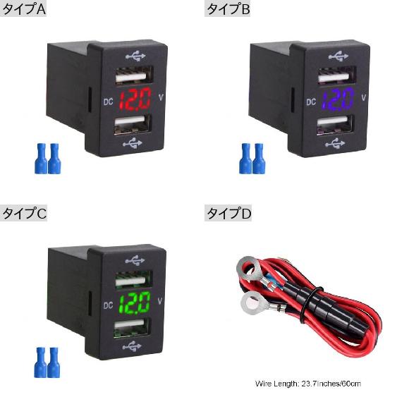 3.1A デュアル USB チャージャー ソケット 12-24V LED USB パワー アダプタ チャージャー 適用: トヨタ 携帯電話 チャージャー タイプA~タイプC AL-RR-3974 AL