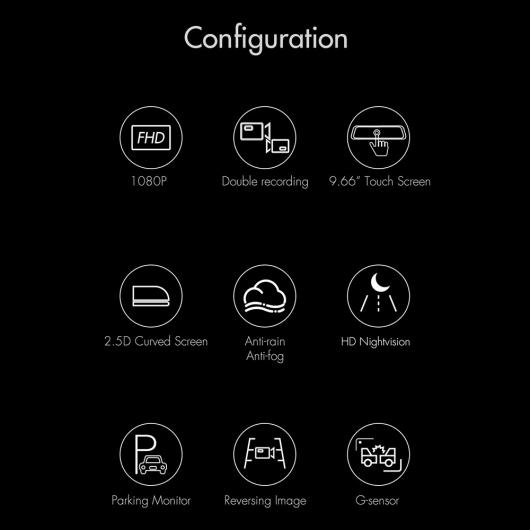 カメラ 1080P ダッシュ カム デュアル レンズ 9.66インチ IPS タッチ DVR リア ビュー ミラー ドライビング レコーダー AL-RR-4037 AL