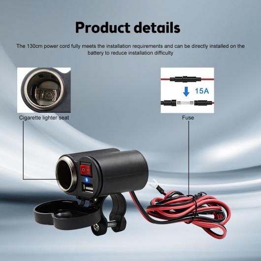 防水 USB オートバイ ハンドルバー チャージャー ライター アダプタ パワー サプライ ソケット 適用: 電話 モバイル ブラック AL-RR-4057 AL