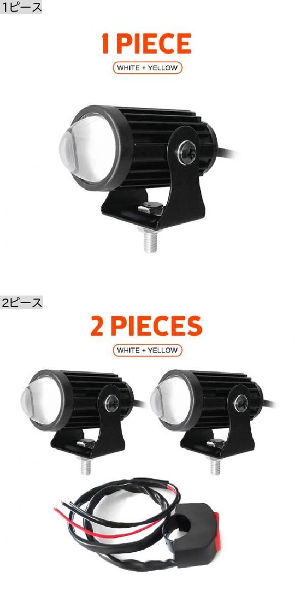 オートバイ スポットライト プロジェクター レンズ デュアル カラー ミニ LED ヘッドライト イエロー ホワイト ドライビング ランプ ユニバーサル 適用: トラック SUV ATV 1ピース AL-RR-4207 AL