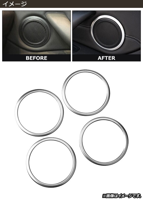 スピーカーリングカバー BMW X1 F48 2016年~2018年 鏡面シルバー ステンレス製 入数:1セット(4個) AP-IT2292