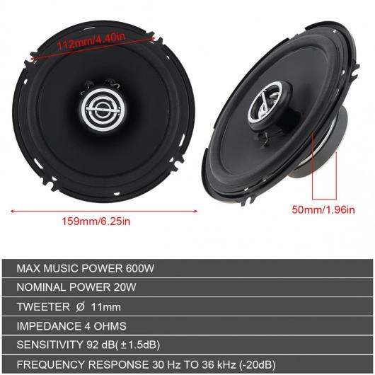 2ピース 6インチ 同軸 スピーカー 600W ユニバーサル オーディオ ステレオ フル レンジ 周波数 Hi-Fi 適用: スピーカー AL-RR-4284 AL