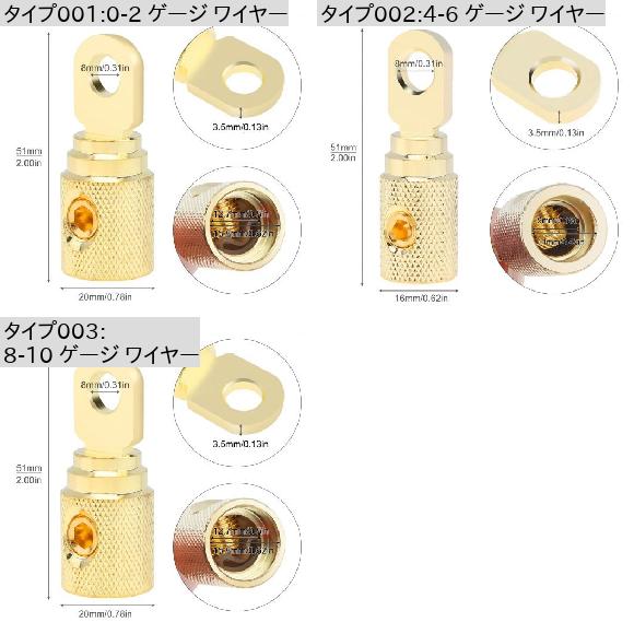 8 ゲージ 真鍮 ゴールド メッキ リングセット スクリュー バッテリー リング ターミナル AMP インプット リデューサー 適用: 8-10 ゲージ ワイヤー 0-2 ゲージ ワイヤー AL-RR-4328 AL