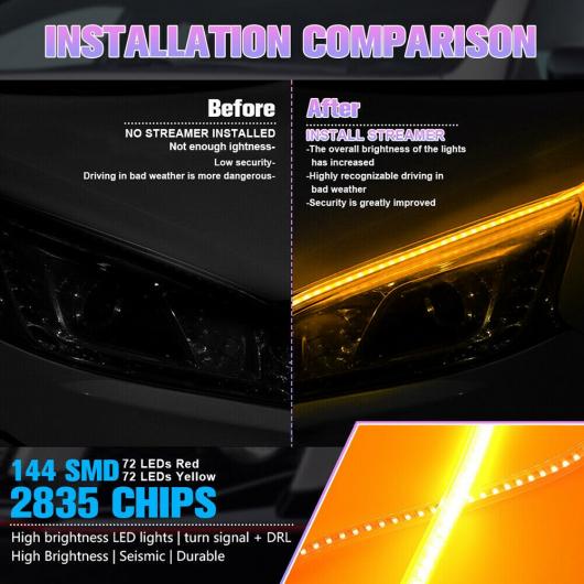 2ピース 60CM 24インチ フレキシブル LED ヘッドライト ストリップ チューブ ライト デイタイム ランニング ライト 防水 DRL ネオン ライト ウインカー バルブ AL-RR-4347 AL