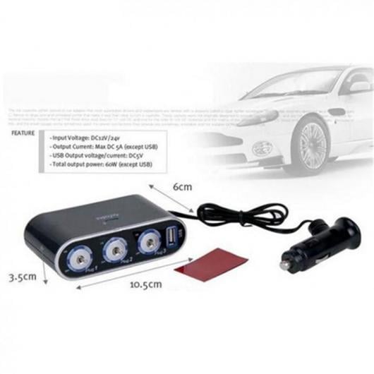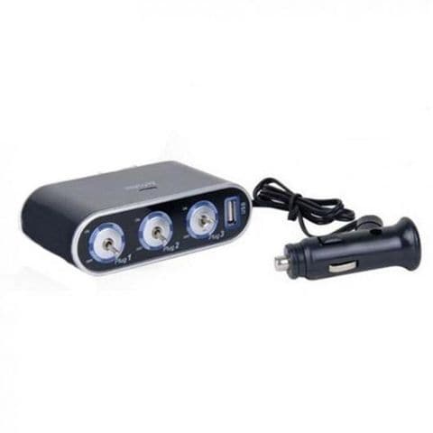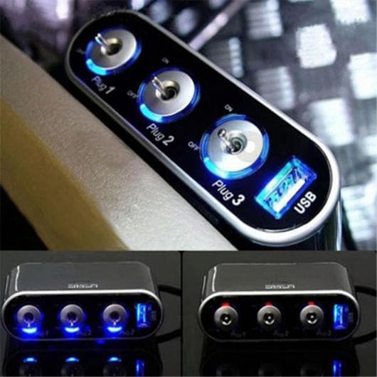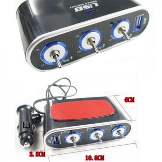 3ウェイ トリプル シガーソケット ソケット スプリッタ LED ライト スイッチ AL-RR-5147 AL