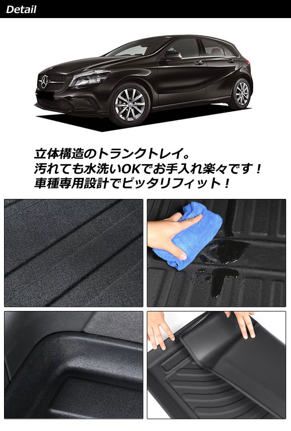 3D トランクトレイ メルセデス・ベンツ Aクラス W176 2012年11月~2018年10月 ブラック TPO素材 立体構造 防水仕様 AP-IT2305