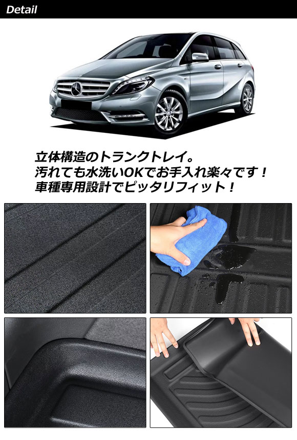 3D トランクトレイ メルセデス・ベンツ Bクラス W246 2012年04月~2019年06月 ブラック TPO素材 立体構造 防水仕様 AP-IT2306