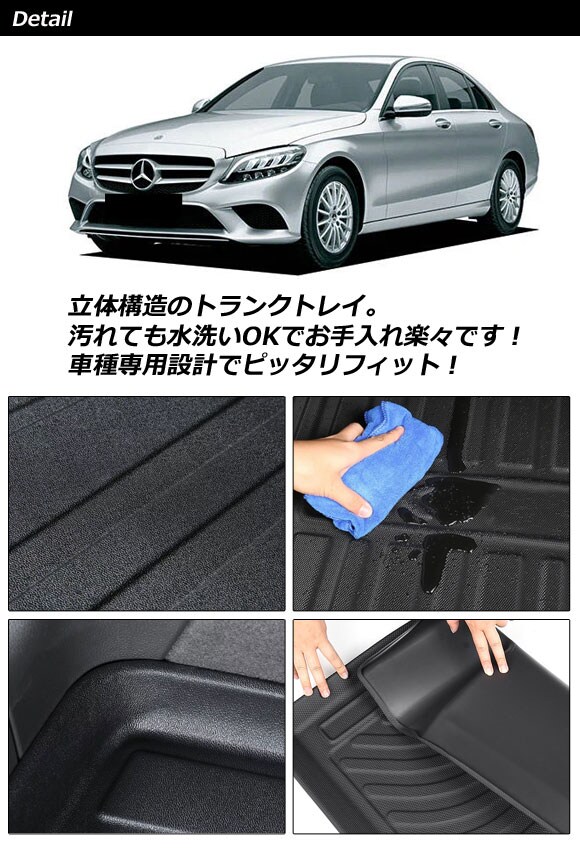 3D トランクトレイ メルセデス・ベンツ Cクラス W205 2014年07月~2021年06月 ブラック TPO素材 立体構造 防水仕様 AP-IT2307