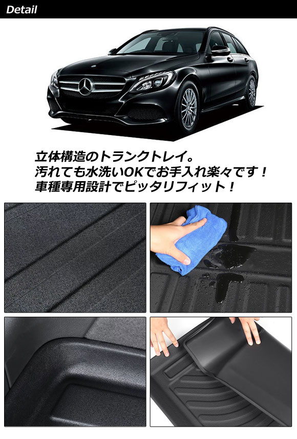 3D トランクトレイ メルセデス・ベンツ Cクラス W204/S204/W205/S205 2011年~2019年 ブラック TPO素材 立体構造 防水仕様 AP-IT2314