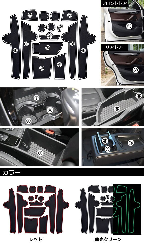 インテリアラバーマット マット ゴムマット 滑り止めマット インテリアマット ノンスリップマット ポケットマット ドリンクホルダーマット ドアポケットマット センターコンソール コンソールボックス コンソールBOX トレイ ドリンクホルダー カップホルダー ドリンク カップ ホルダー フロント リア リヤ ドア パネル インパネ ドアポケット 小物 ポケット ゴム ラバー 滑り止め 滑り防止 傷防止 傷予防 防汚 異音 防音 緑 PHOSPHORESCENT GREEN ホワイト 白 WHITE 保護 ガード ドレスアップ インテリア 内装 カスタム カスタマイズ