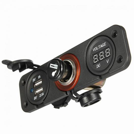 12V 2.1A ブラック デュアル USB 車両 GPS 携帯電話 アダプタ チャージャー IP65 防水 デジタル 電圧計 シガーソケット ソケット AL-RR-5290 AL