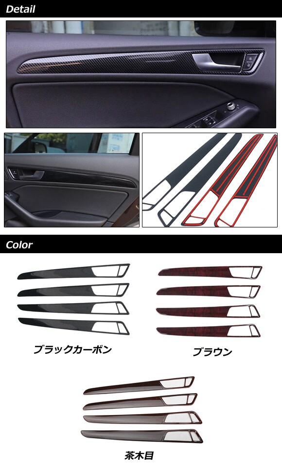 インナードアガーニッシュ アウディ Q5 8RCDNF/8RCALF/8RCTVF 2009年06月~2017年09月 ブラウン ABS製 入数:1セット(4個) AP-IT2319-BR