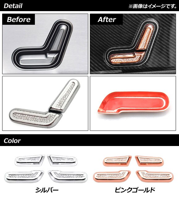 インテリアシートスイッチカバー メルセデス・ベンツ Bクラス W247 B180,B200 2019年06月~ シルバー ラインストーン付き 入数:1セット(4個)