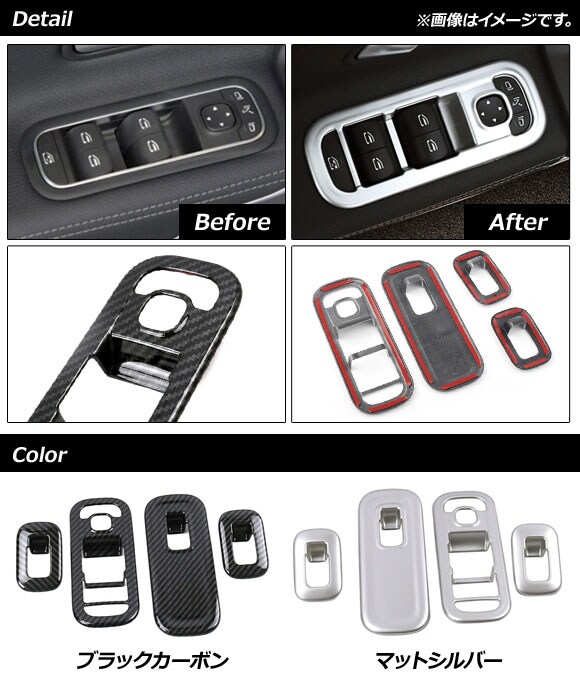 パワーウインドウスイッチカバー メルセデス・ベンツ CLAクラス C118/X118 CLA180,CLA200,CLA250 2019年10月~ マットシルバー ABS製 入数:1セット(4個)