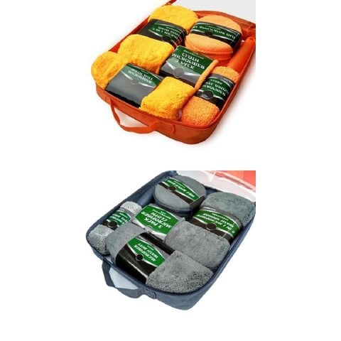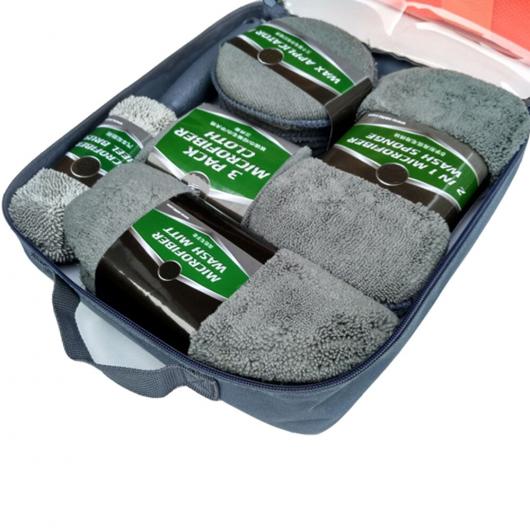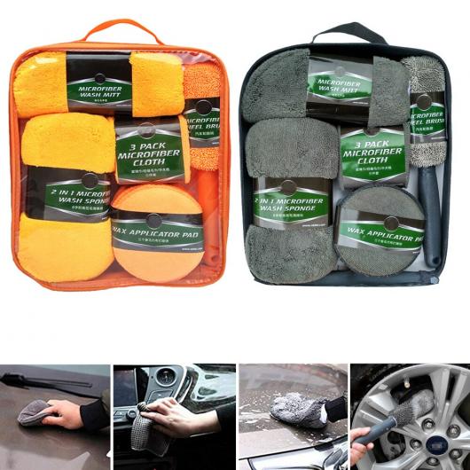 9ピース クリーニング キット ウォッシュ 用品 マイクロファイバー タオル ホイール ブラシ ワックス スポンジ コンビネーション クリーニング ツール オレンジ・グレー AL-RR-5938 AL