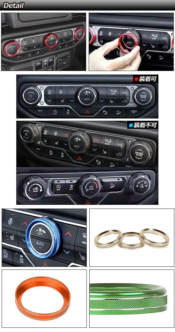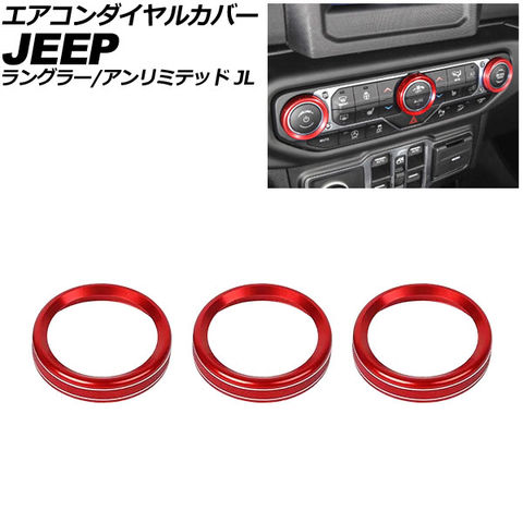 エアコンダイヤルカバー ジープ ラングラーアンリミテッド JL系 2018年~ レッド アルミ製 入数:1セット(3個)