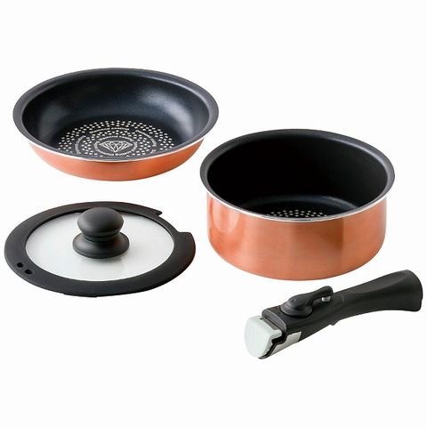 耐久性に優れたダイヤモンドコートを採用。外面はメタリックな銅色で高級感があります。ハンドルが取り外せるので収納にも便利です。